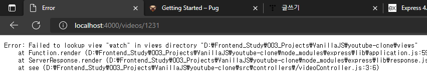 그리고 controller에서 res.send() 부분을 res.render()로 바꾸어 준다.