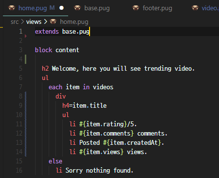 그러므로 우리는 pug 파일을 views 폴더 안에 만들어주면 된다.