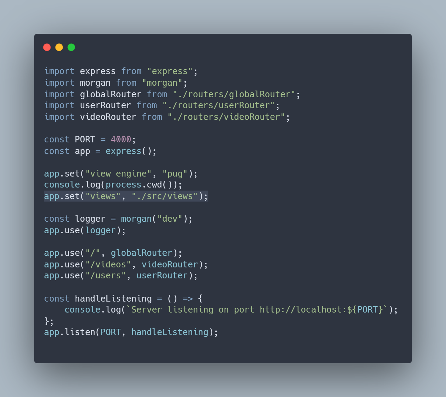 이를 수정해주기 위해선 views 폴더의 위치를 Express에게 알려주어야 한다.